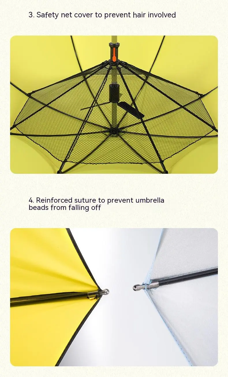 The built‑in fan adds airflow to your walk, helping reduce body heat and humidity discomfort. This feature makes summer walks, sporting events, festivals, and outdoor markets much more enjoyable, especially during warm afternoons.