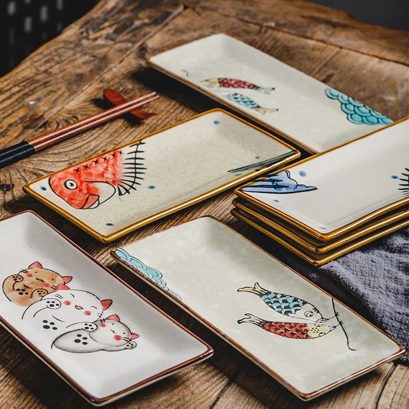 Perfect for Gifting: The Underglaze Creative Tableware Rectangular Ceramic Cooking Sushi Plate makes an