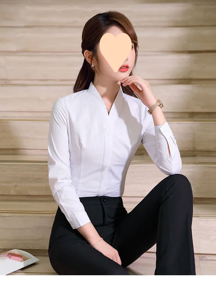 Stylish and Professional: The striped pattern combined with the long sleeve and white