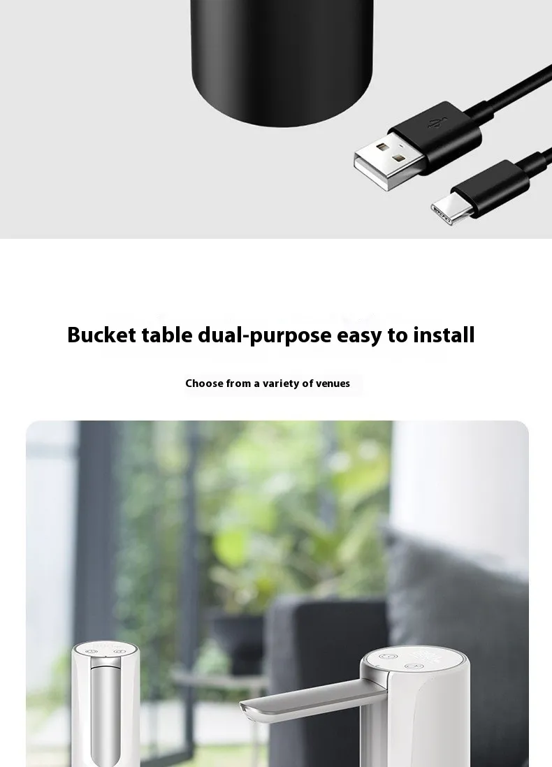 Built for convenience, this automatic pump eliminates the need to lift heavy water bottles or install bulky dispensers. With its ergonomic design and stable base, the device sits securely on top of the water bottle and operates quietly, making it suitable for kitchens, living rooms, workplaces, outdoor picnics, RV trips, and camping adventures. The USB‑rechargeable feature provides long battery life and can be recharged easily with any USB power source.