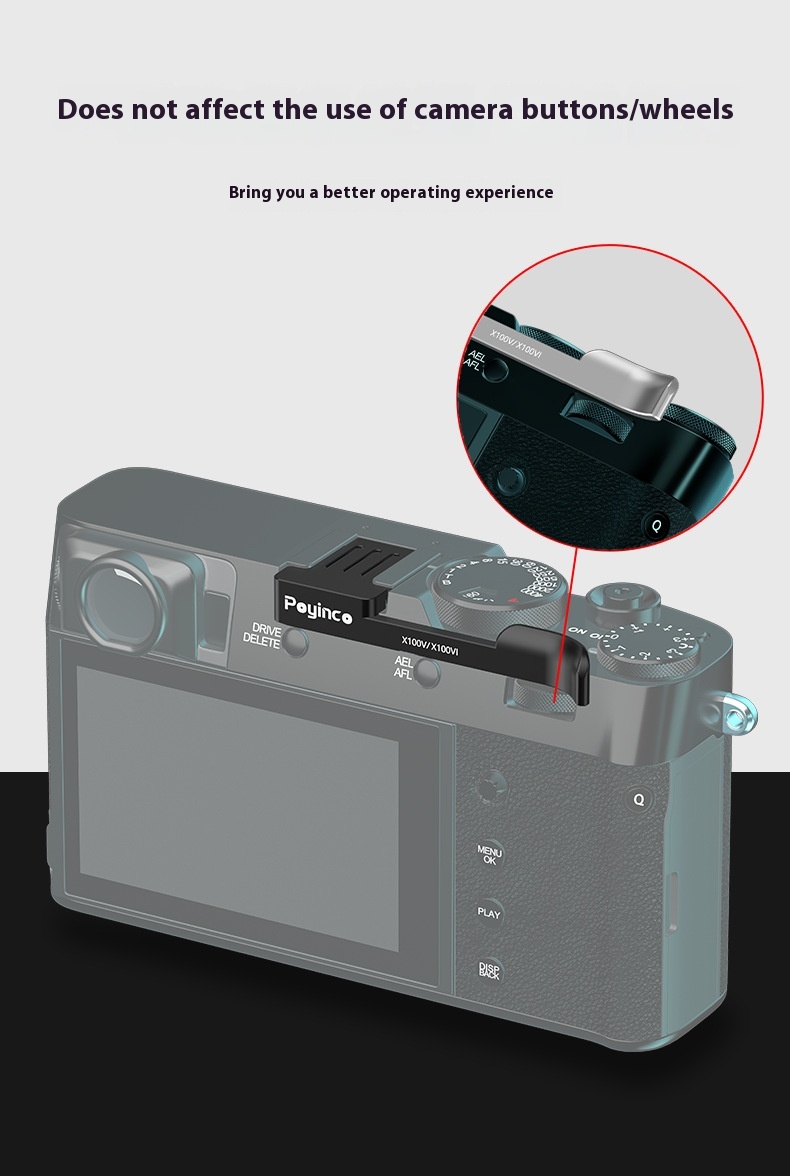 Enhance your camera handling with our Universal Metal Hot Shoe Thumb Handle. Designed for Camera X100V, X100VI, X100F, XE3, and XE4, this