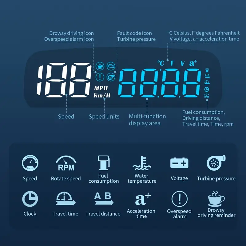Upgraded 17.78cm OBD Head-Up Display for Cars