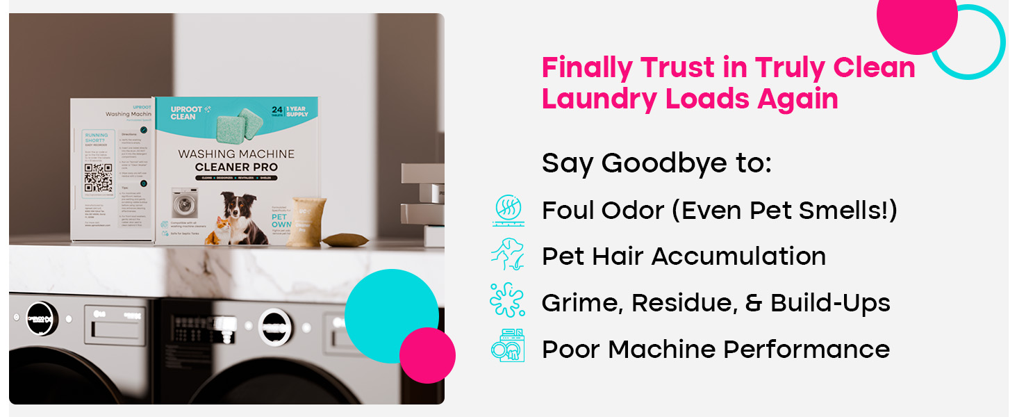 - Eliminate Pet Odors for Good: Uproot Clean washing machine cleaning tablets combine Tea Polyphenols & other ingredients to destroy bad odors, leaving every laundry load perfectly fresh.