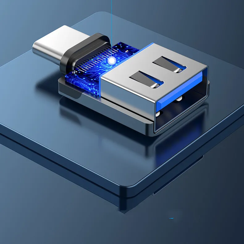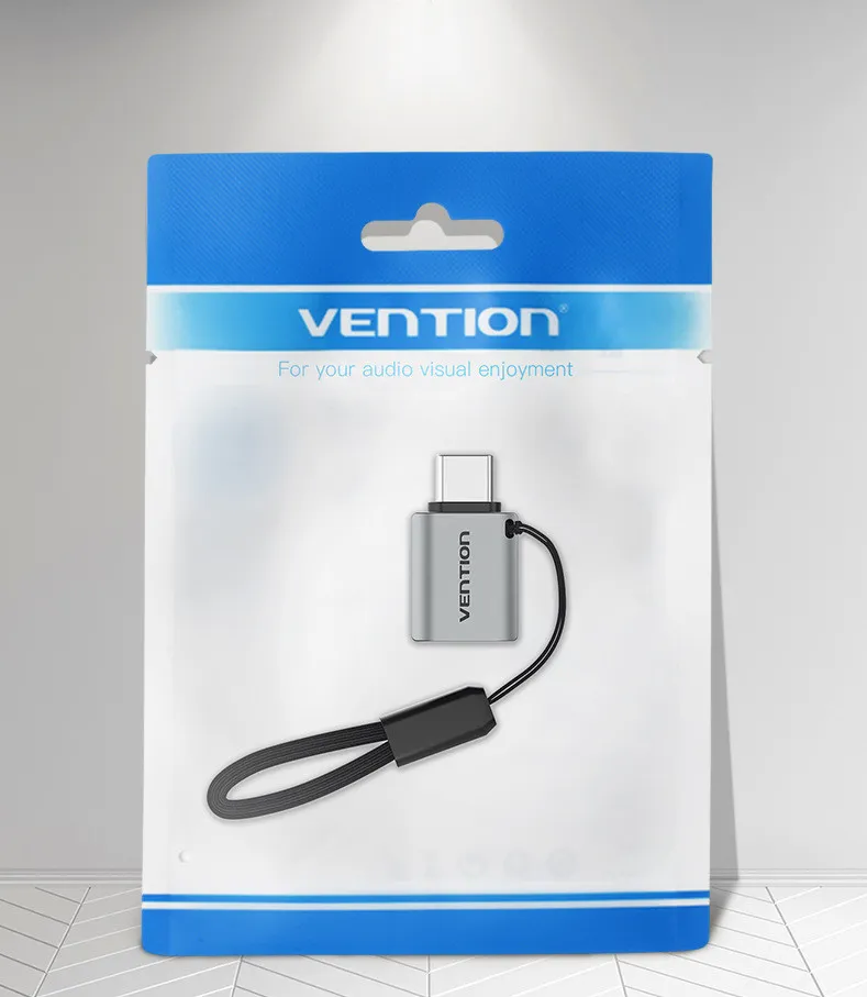 USB 3.0C Male To A Female OTG Adapter Aluminum Alloy Grey With Lanyard