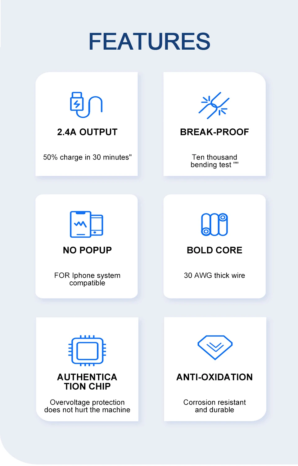 ✨ 1: D8 is a professional brand.The connector a of our product is usb a.The connector b is lightning.The features is data cable.Our product is made in cn(origin).The certification of our product is ce.