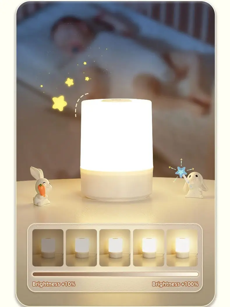 This night lamp is designed to offer versatile lighting solutions with its touch control feature, adjustable brightness, and three color settings. The rechargeable battery provides a cordless and portable lighting option, making it easy to place the lamp in different locations around your home. The lamp includes a convenient switch for turning it on and off, along with touch control for adjusting the color and brightness. The three color settings—warm, neutral, and cool light—allow you to customize the lighting to suit your needs, whether you're using it as a night light, reading lamp, or ambient light.