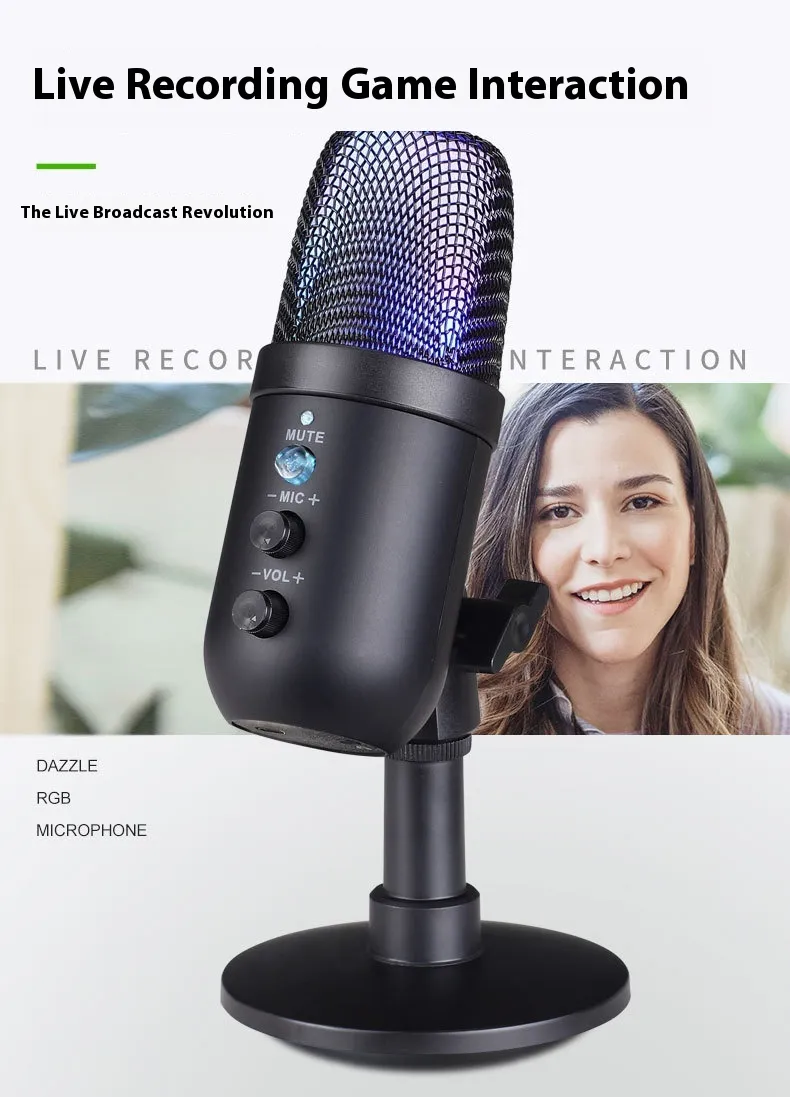 USB Microphone RGB – Versatile, High-Quality Sound for Live Streaming, Karaoke, and Gaming