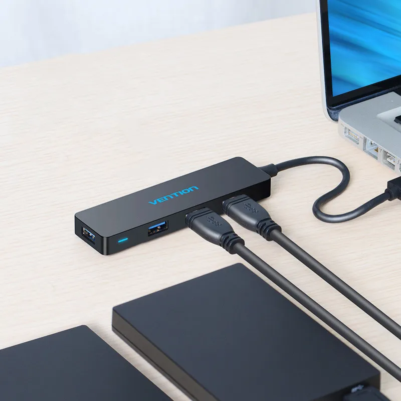 With multiple USB 3.0 ports (typically 4 or more), this expansion hub allows you to connect various USB devices such as external hard drives, flash drives, printers, keyboards, mice, and more. This multi-port design helps you avoid constantly plugging and unplugging cables, making your workspace more organized and efficient.