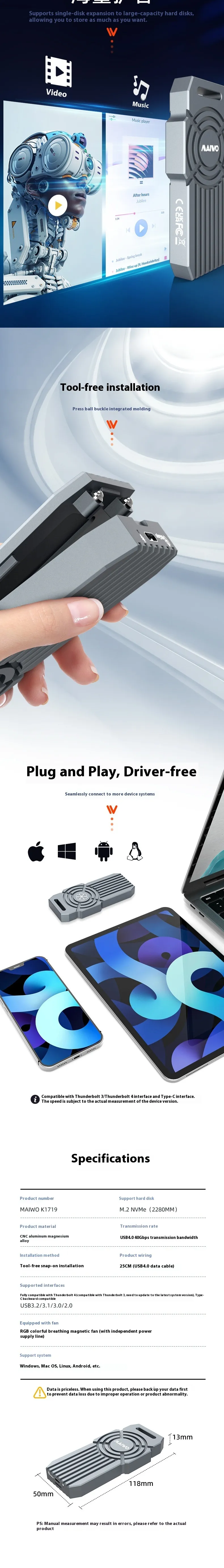Color: K1719 USB4 hard disk box-40Gbps