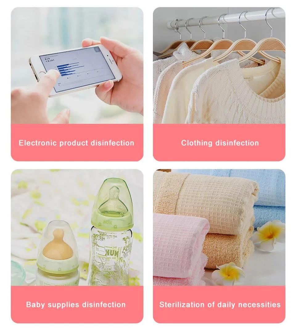 Chemical-Free Disinfection: No need for harsh chemicals, making it safe to use around food, electronics, and delicate