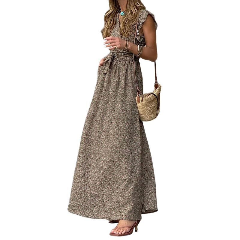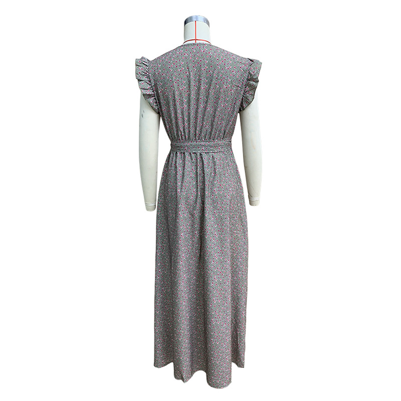 Delicate ruffled sleeves add charm and movement to the dress, enhancing its stylish and romantic appeal. Perfect for adding a subtle flair to your everyday or event wardrobe.