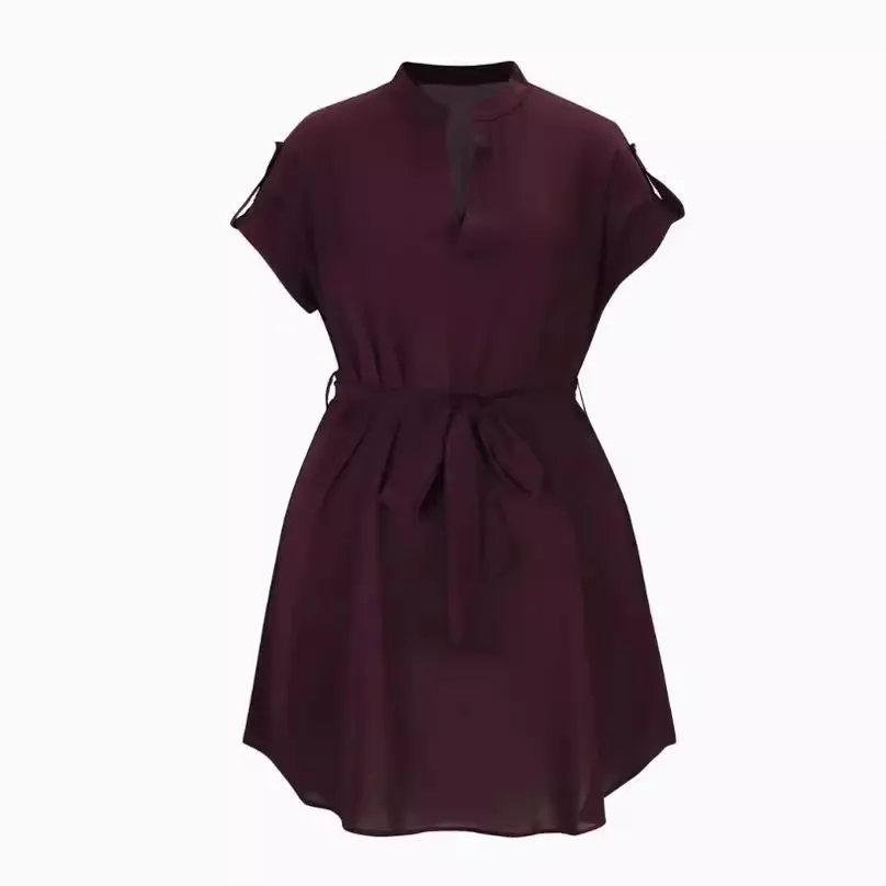 V-neck Short Sleeve Dress With Belt Summer Fashion Bowknot Dresses For Women Clothing