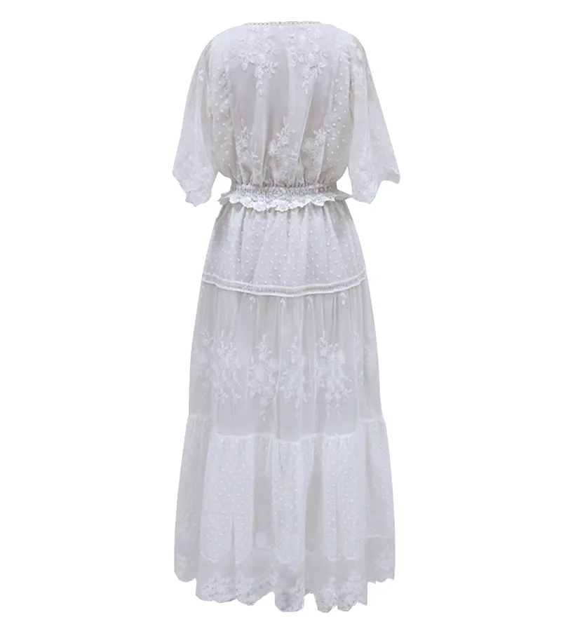 V-Neck Short Sleeve Lace Dress Women's Clothing