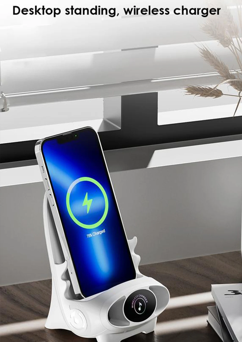 - [Wide Application]:The mini chair wireless charger complies with ergonomic visual design standards, perfect for face recognition, watching movies, texting, hands-free calling, live chatting, and more.Not only can put the phone can also support the tablet, support 4.5-11 inches cell phone or phone tablet device.