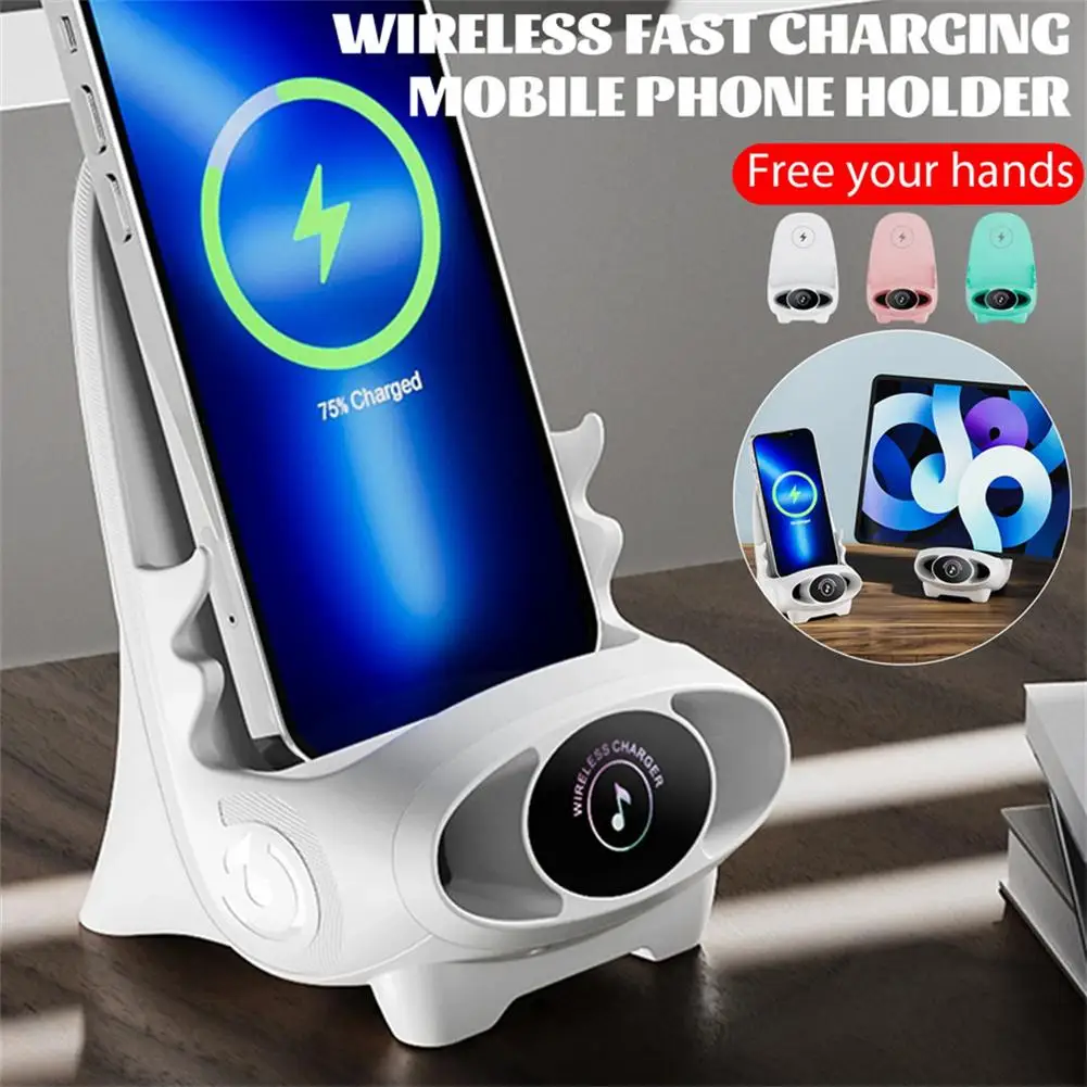 - [Mini Chair Wireless Fast Charger Multifunctional Phone Holder]:Unique and novel, wireless charging mobile phone holder function, can be placed horizontally or vertically, and there is a sound hole at the bottom, which makes the sound more three-dimensional when the mobile phone is playing.