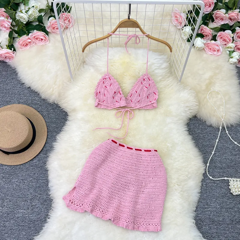The two-piece design is easy to mix and match with other items in your wardrobe. Pair the top with jeans for a casual look, or the skirt with a white blouse for something more sophisticated. This outfit captures the essence of carefree vacation style — effortlessly cute, refreshingly comfortable, and endlessly photogenic.