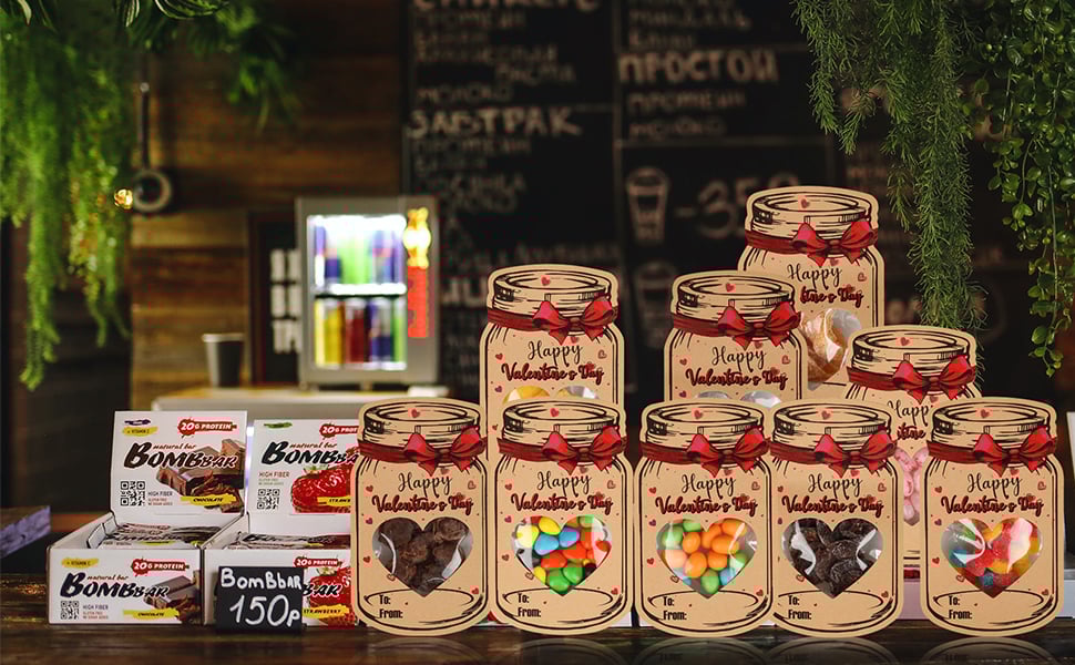 💌Personalized Candy Jar Valentine Cards - Set of 50, 5.9" x 3.5" Kid's Valentine Cards, Classroom Valentines Party Favor