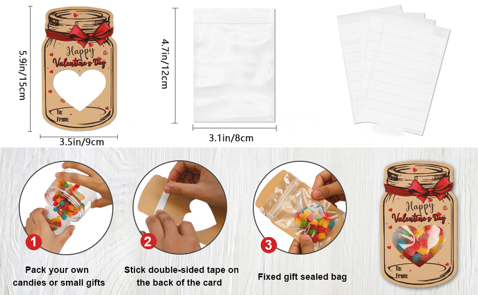 - Put cards and your snacks into one of the included plastic bags for unique Valentine's Day fun🎁.