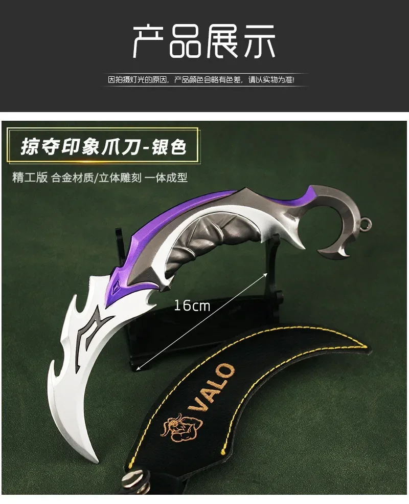 Unleash your inner gamer with the Valorant Keychain Melee Reaver 2.0 Karambit Knife! This 16cm metal M4 cosplay weapon is the perfect accessory for any Valorant fan, anime enthusiast, or cosplay lover. Whether you're looking to enhance your Valorant cosplay or searching for a unique gift toy for boys, this karambit knife and samurai sword combo is sure to impress. With its realistic design and high-quality craftsmanship, it’s a must-have collectible for anyone who loves Valorant, karambit knives, or anime weaponry.
