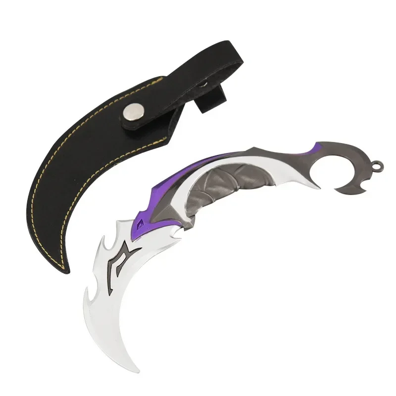 Crafted from premium metal, this karambit knife is designed for long-lasting durability. The high-quality construction ensures that it will withstand the test of time, whether it's used for cosplay or simply displayed as a gaming collectible. The metallic finish also provides a smooth texture and vivid shine, making it a premium addition to any Valorant or cosplay collection.