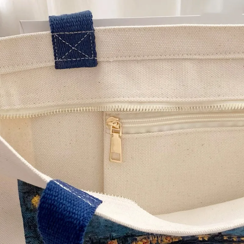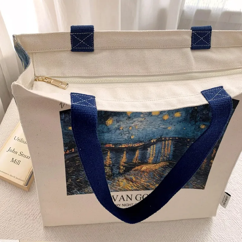 Van Gogh Museum Starry Sky on the Rhône Canvas Zip Bag – Artistic Elegance for Everyday Use