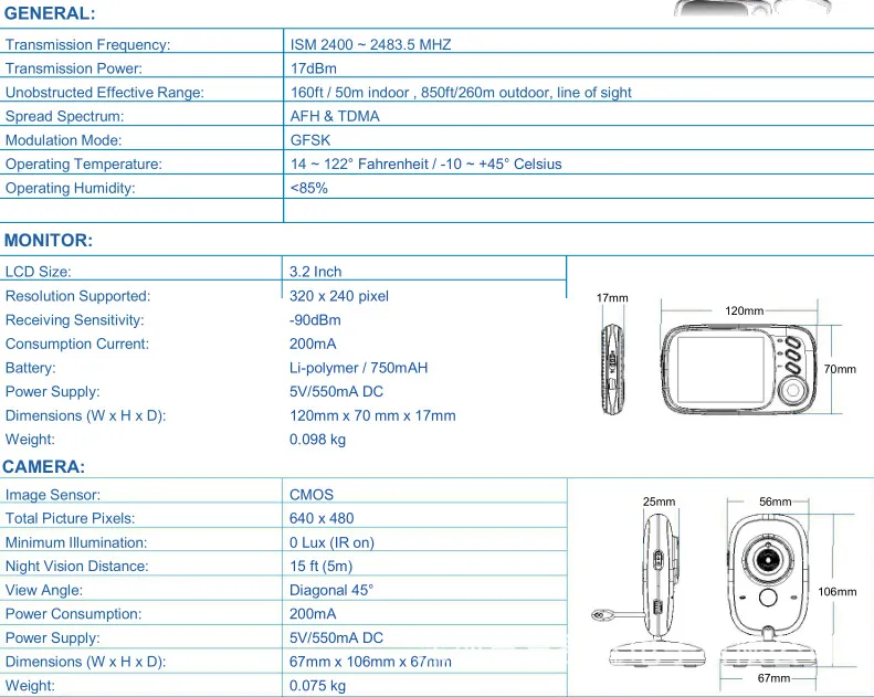 Transmission distance: 160ft/50m indoor/850ft/260m outdoor, line of sight