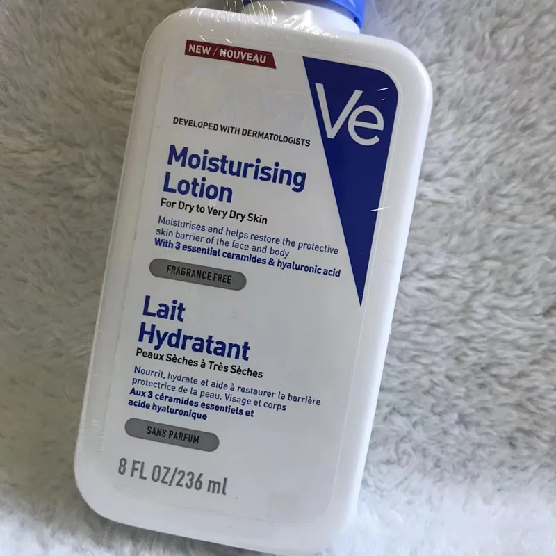 Ve Moisturising Lotion is a fragrance-free, hydrating lotion enriched with hyaluronic acid and ceramides, perfect for dry to very dry skin, restoring moisture and protecting the skin barrier.