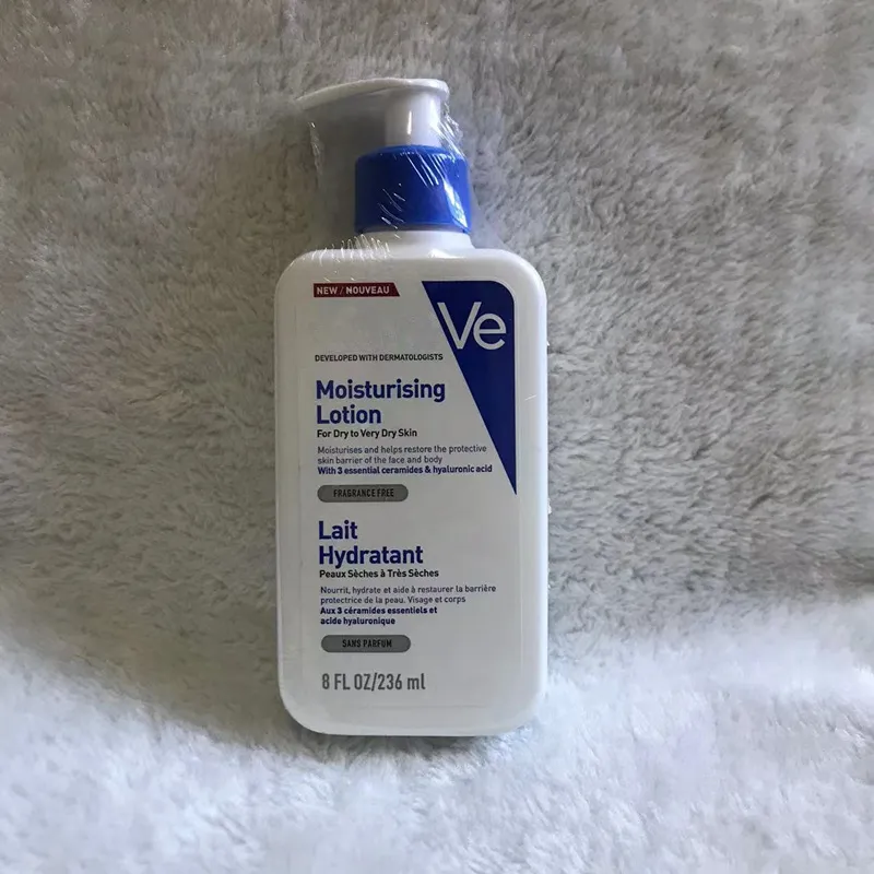 Ve Moisturising Lotion is a fragrance-free, hydrating lotion enriched with hyaluronic acid and ceramides, perfect for dry to very dry skin, restoring moisture and protecting the skin barrier.
