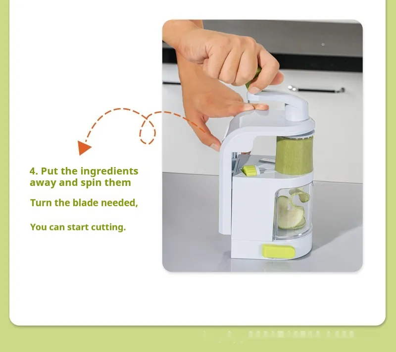 The multifunction mandoline slicer hand crank rotary grater design, keeps your hand away from the blades, more safely and efficiently.