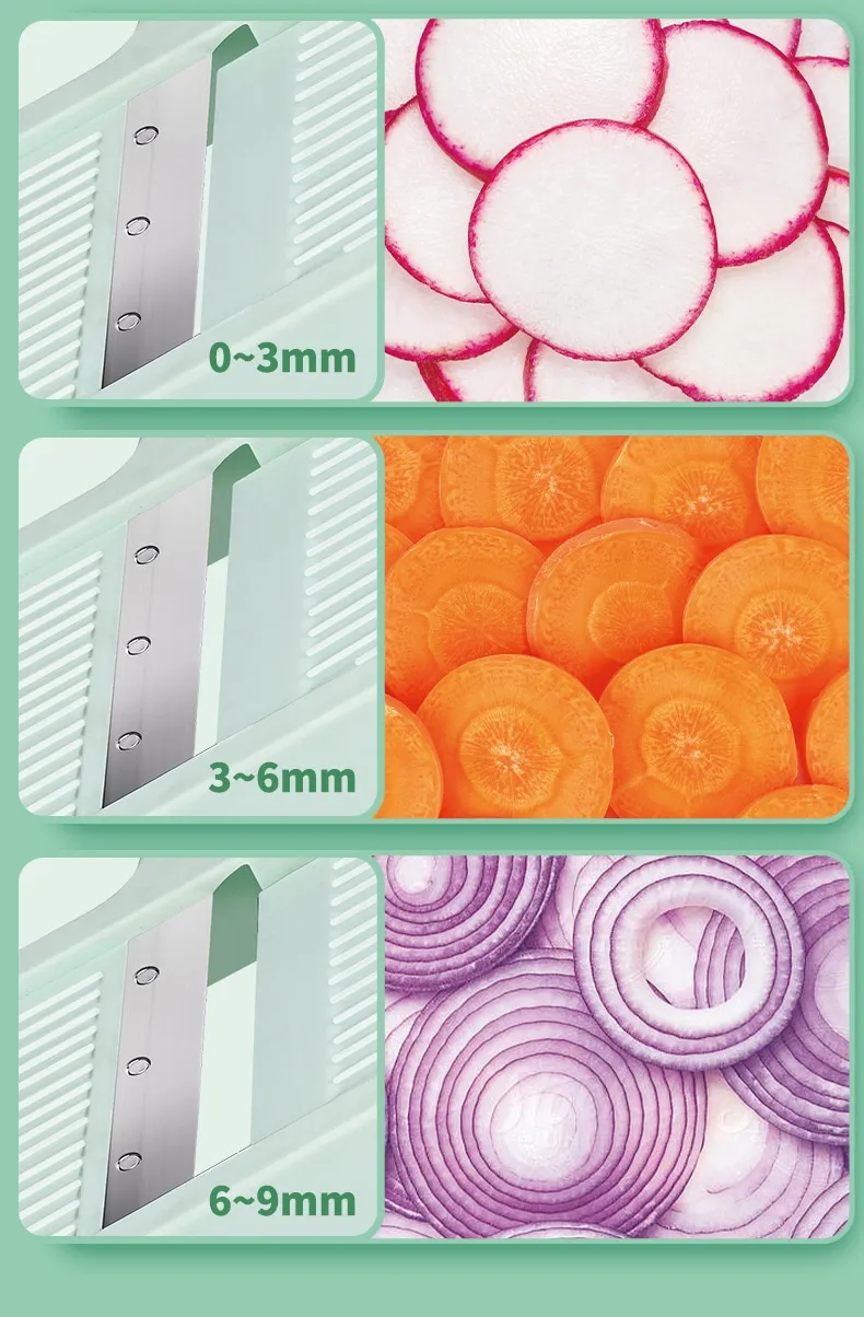 This vegetable slicer is ideal for anyone who values efficiency, precision, and safety in the kitchen. Unlike using a knife, which can be time-consuming and inconsistent, the slicer offers quick, uniform results with just a few passes. Its adjustable settings give you full control over the thickness of your slices, allowing you to cater to different recipes and personal preferences.