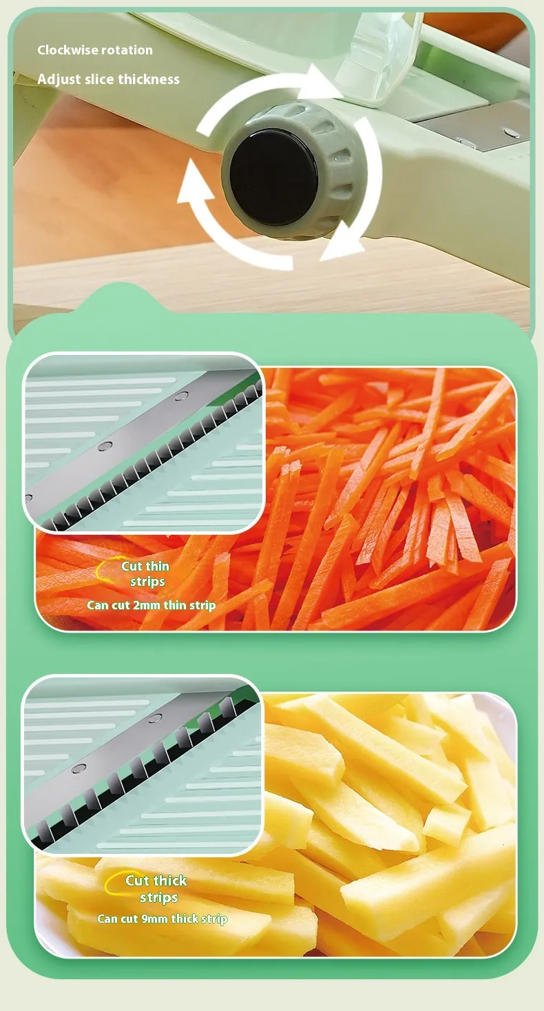 Reduced Waste: By making uniform cuts, the slicer minimizes vegetable waste, ensuring that every piece is used efficiently