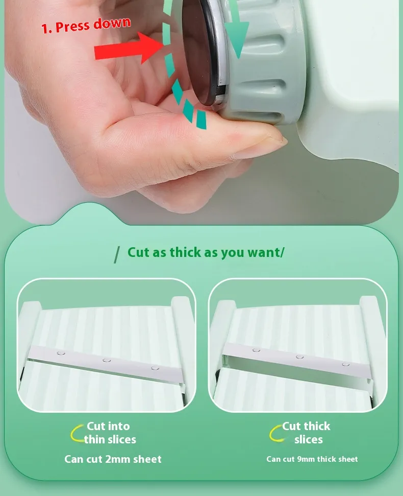 Sharp, Durable Blades: The slicer is equipped with a high-quality blade that ensures precise and uniform cuts every time,