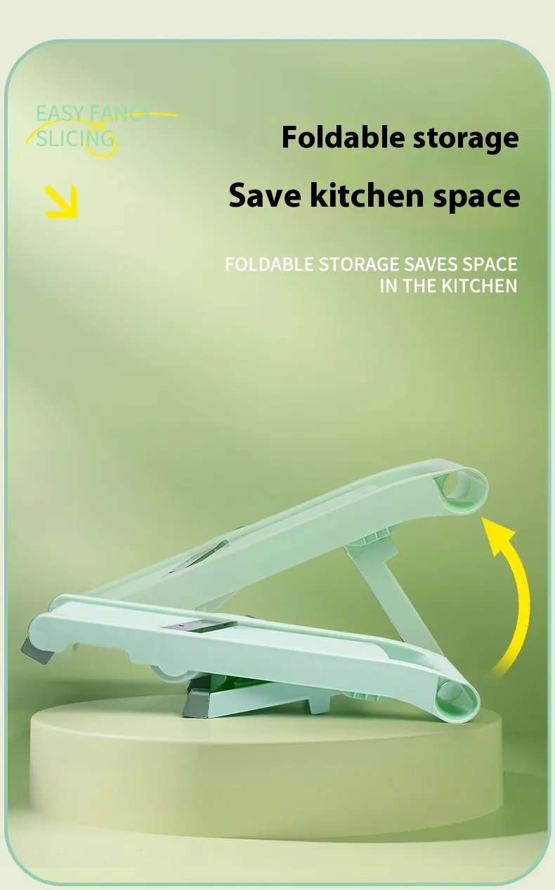 Saving Space and Cooking faster: The built-in multipurpose blade design, just adjust button to adjust thickness or change cutting options, spend less time and make cooking faster and easier. Unit folds flat for easy storage in a drawer.