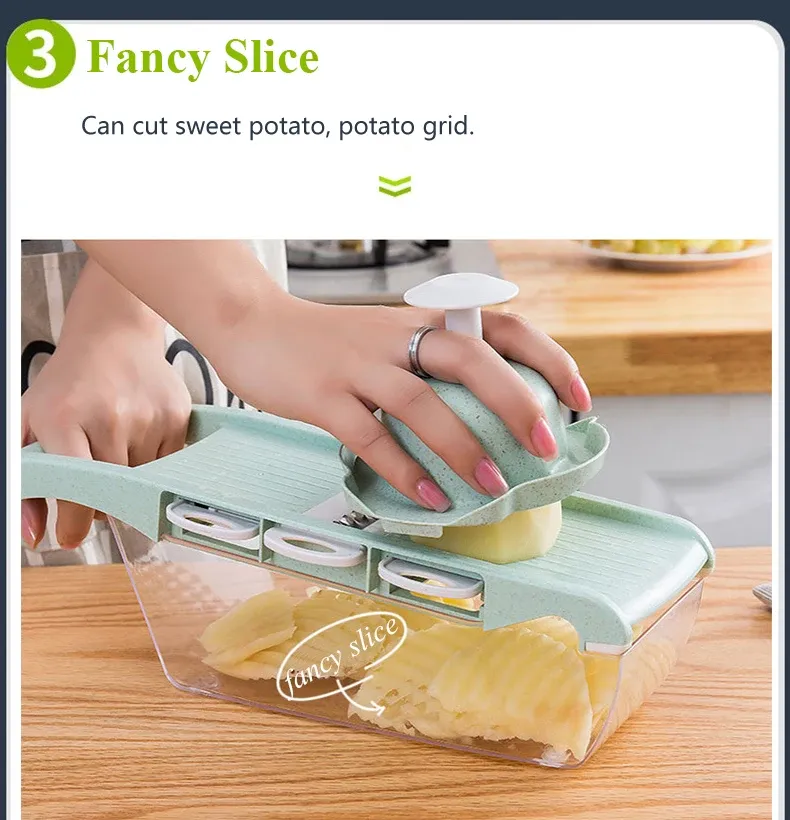 A veggie slicer is an essential kitchen tool designed to make your meal preparation easier, faster, and more efficient. Whether you're preparing salads, stir-fries, or other vegetable-based dishes, a high-quality veggie slicer is a game-changer in the kitchen. This versatile tool allows you to cut vegetables with precision and consistency, saving you valuable time and effort. With sharp blades and a user-friendly design, the veggie slicer ensures that every slice is uniform, making your dishes look professional and well-prepared.