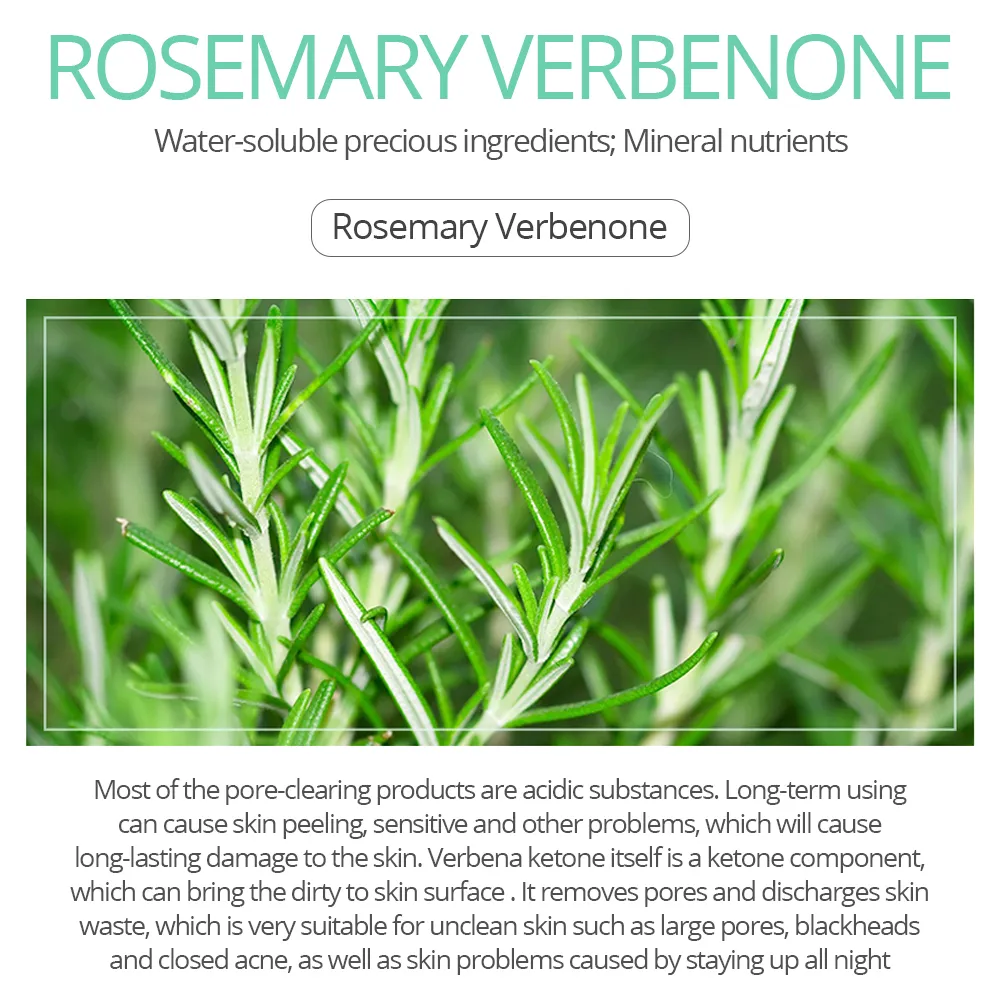 Rosemary verbenone organic gel contains verbenone to soothe the skin. May also promote skin metabolism, improve acne, shrink pores and