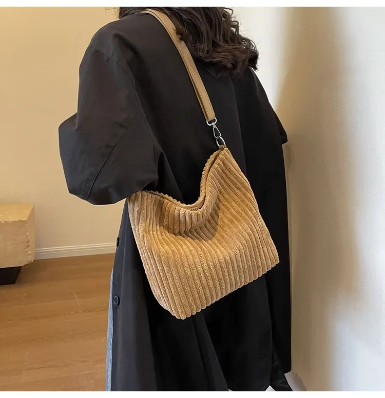 Styling the Versatile Large Capacity Corduroy Soft Surface Crossbody Shoulder Bag