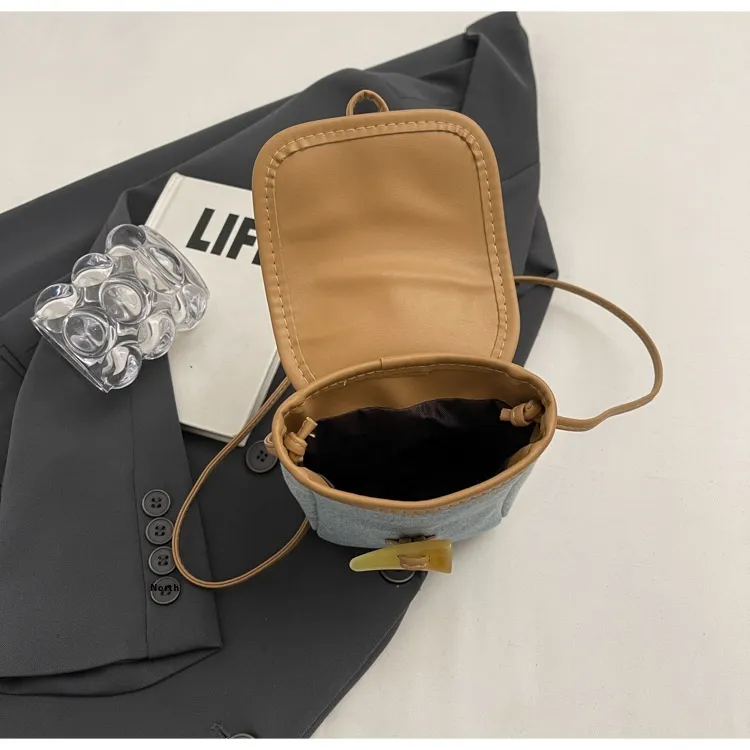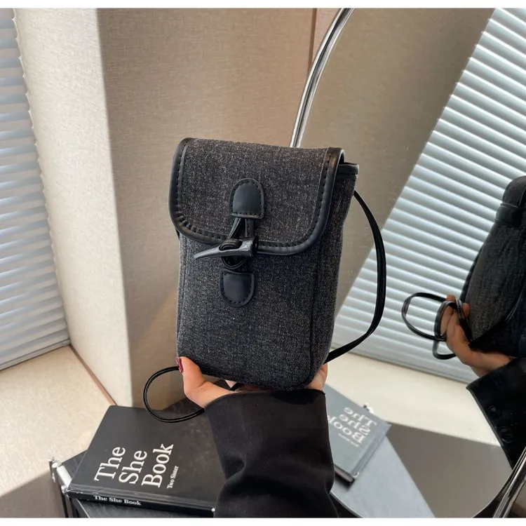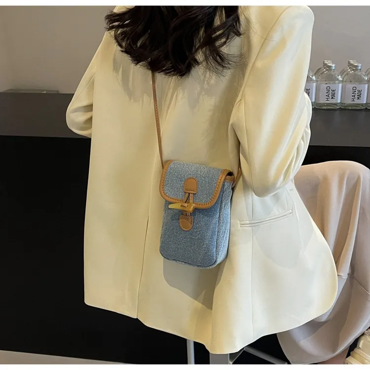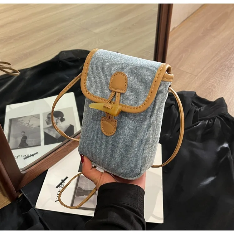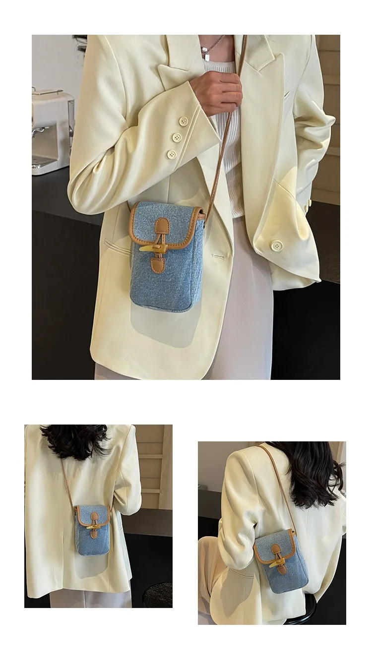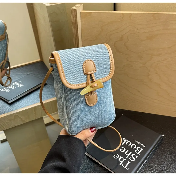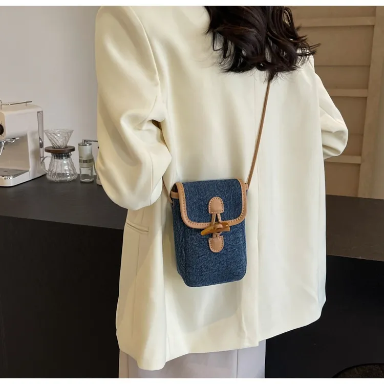 Vertical Denim Mobile Phone Bag Women's Horn Button Shoulder Messenger Bag