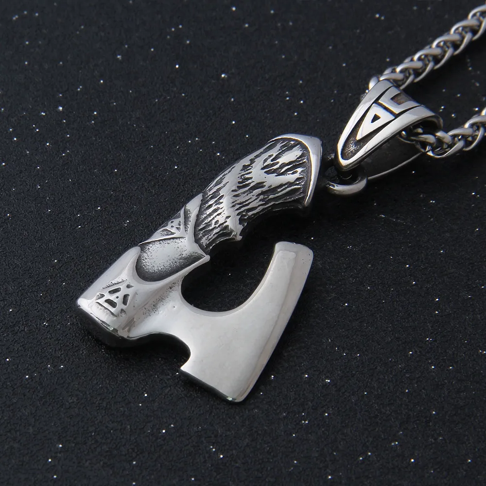Viking Celtic Wolf Crow Double-sided Axe Pendant