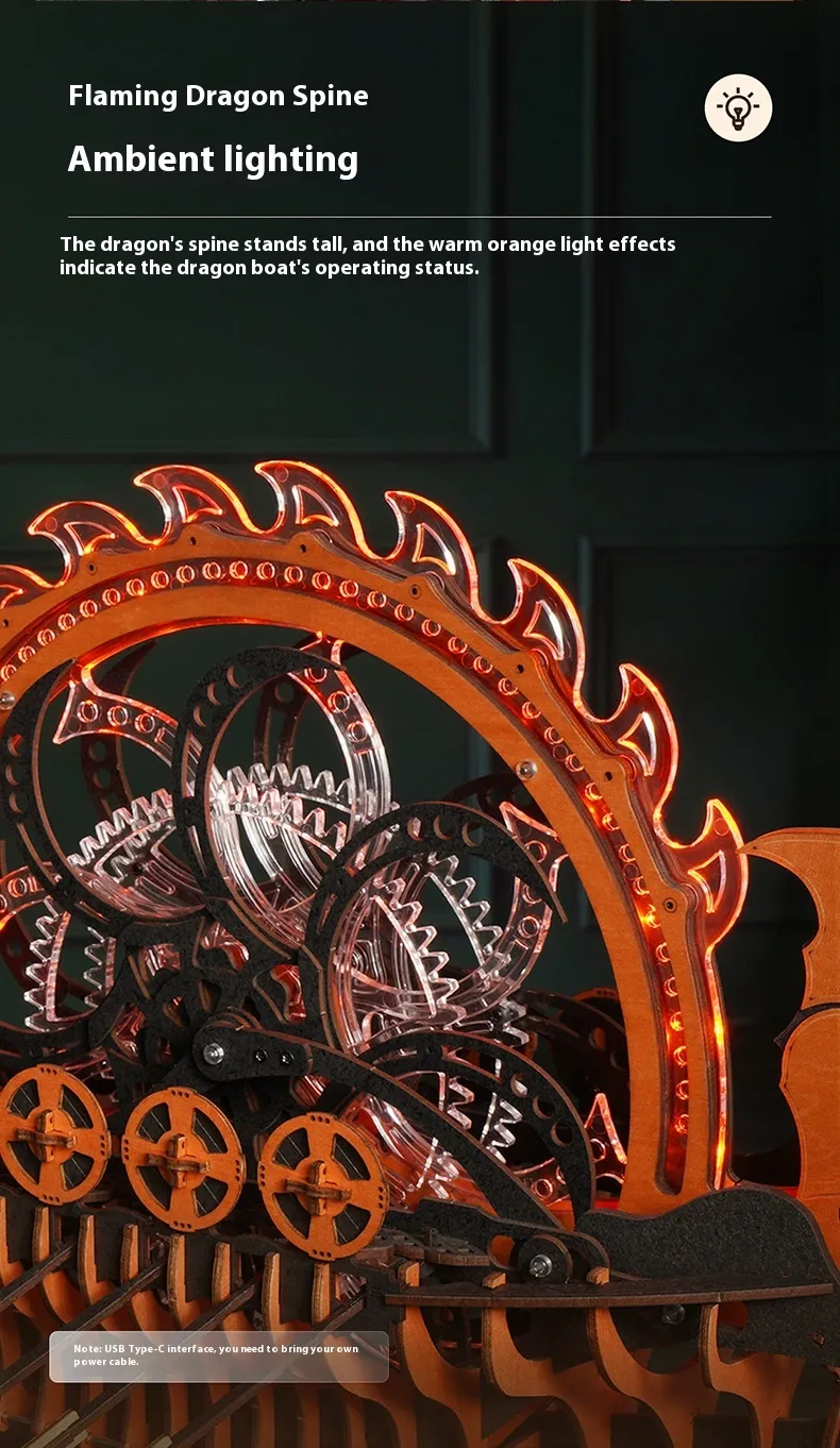 Once assembled, the dragon boat makes a unique decorative piece or interactive toy.