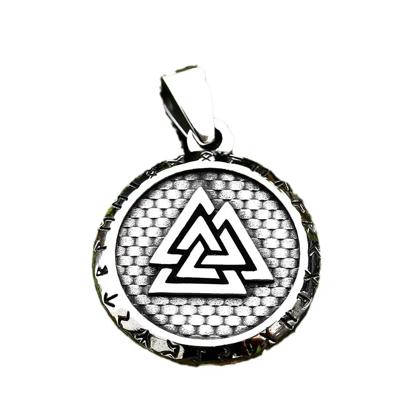 Viking Letter Titanium Steel Stacked Triangle Round Pendant