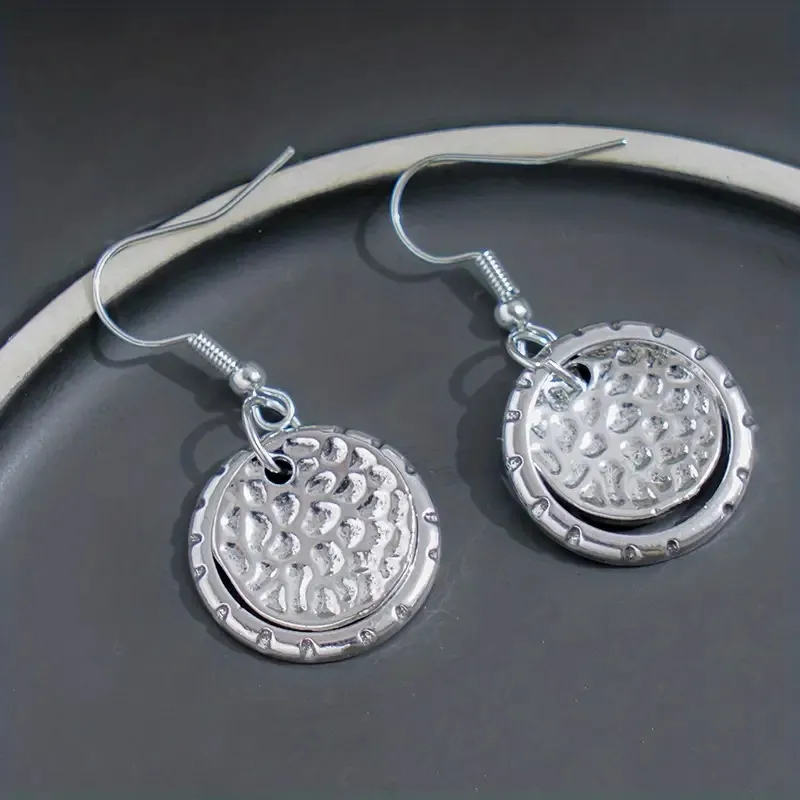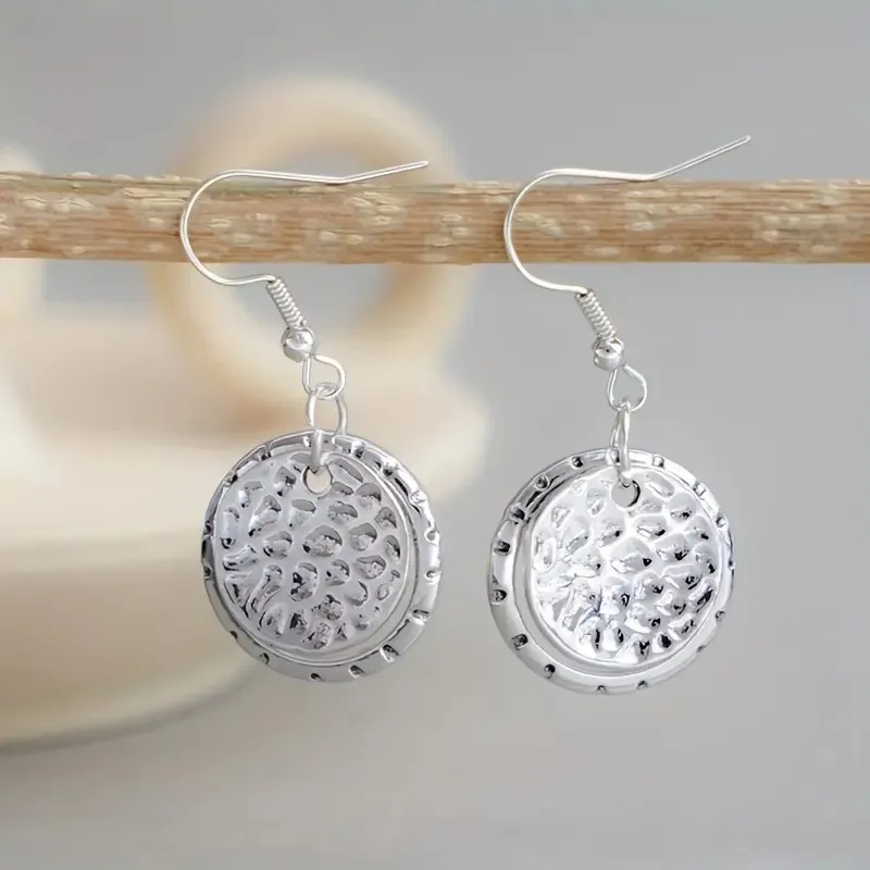 - Textured finish: The textured surface of the discs adds depth and complexity to the design, making the earrings both subtle and eye-catching.