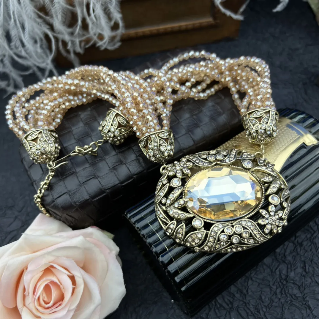 Vintage Court Style Fashion Elegant Simple And Light Luxury Rhinestone Inlaid Women's Necklace