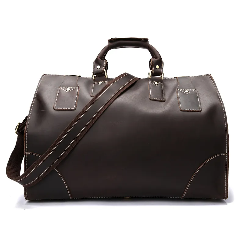 Elevate your travel experience with the Vintage Cowhide Men's Bag, a large-capacity travel leather shoulder bag designed for the modern man