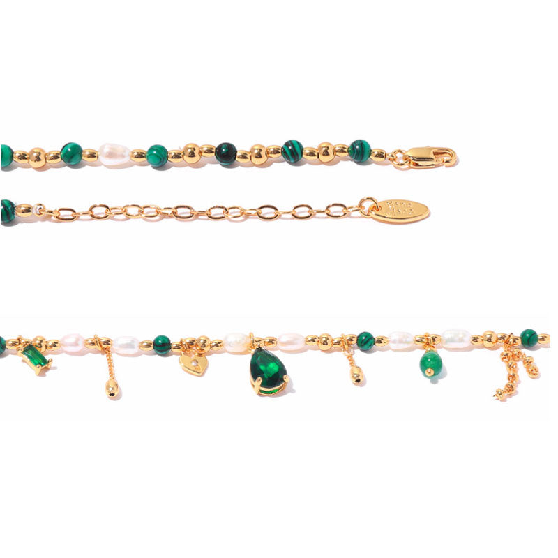 Vintage Elegant Pearl Emerald Tassel Necklace