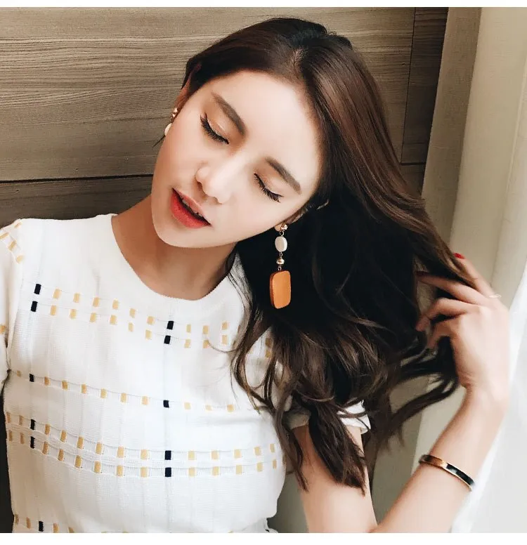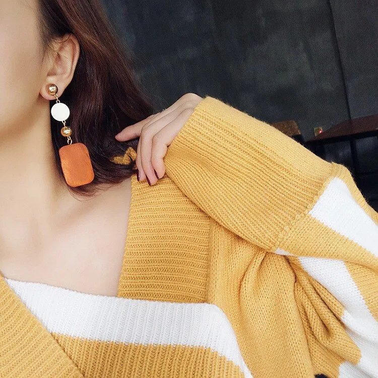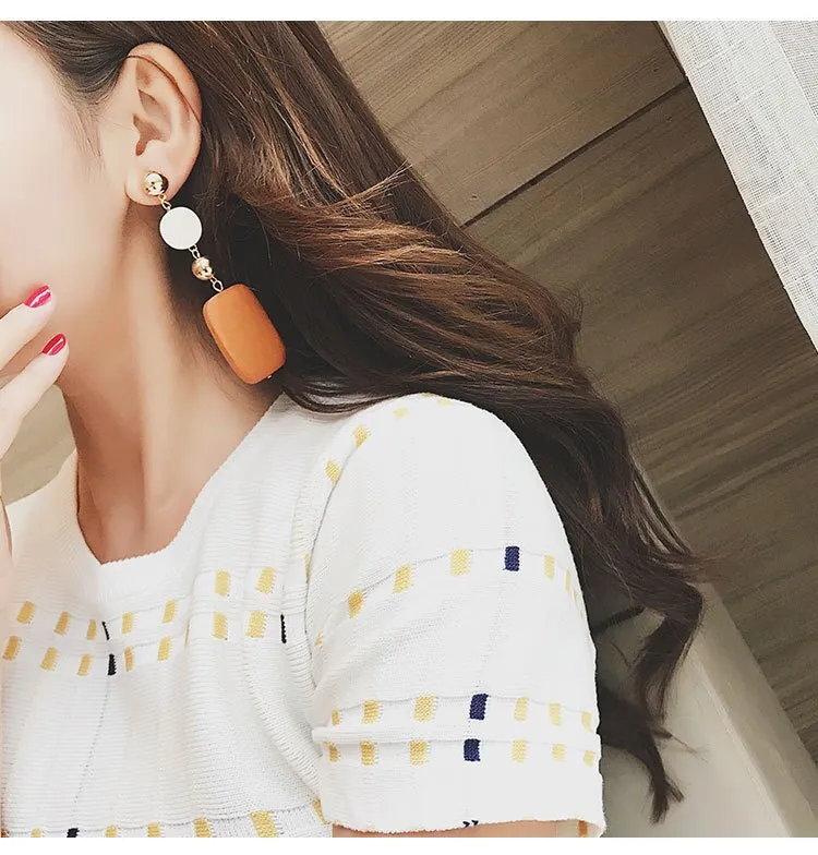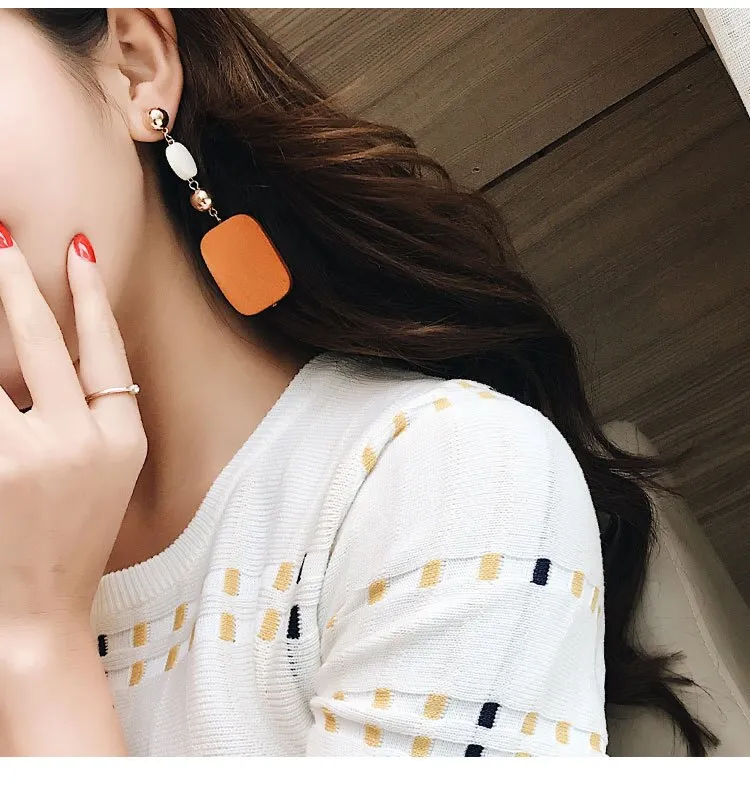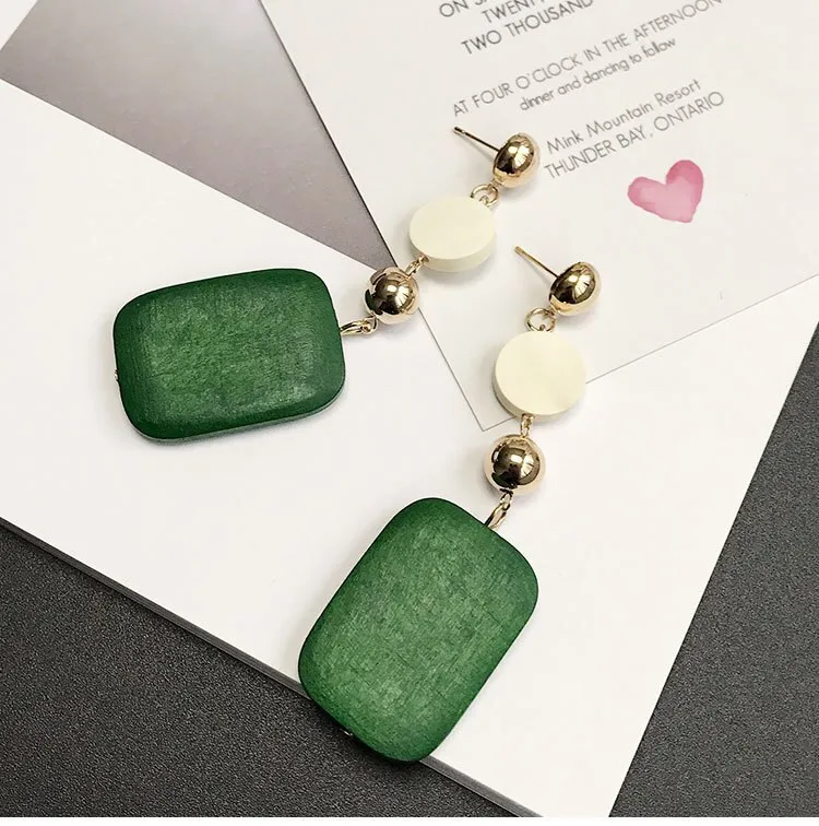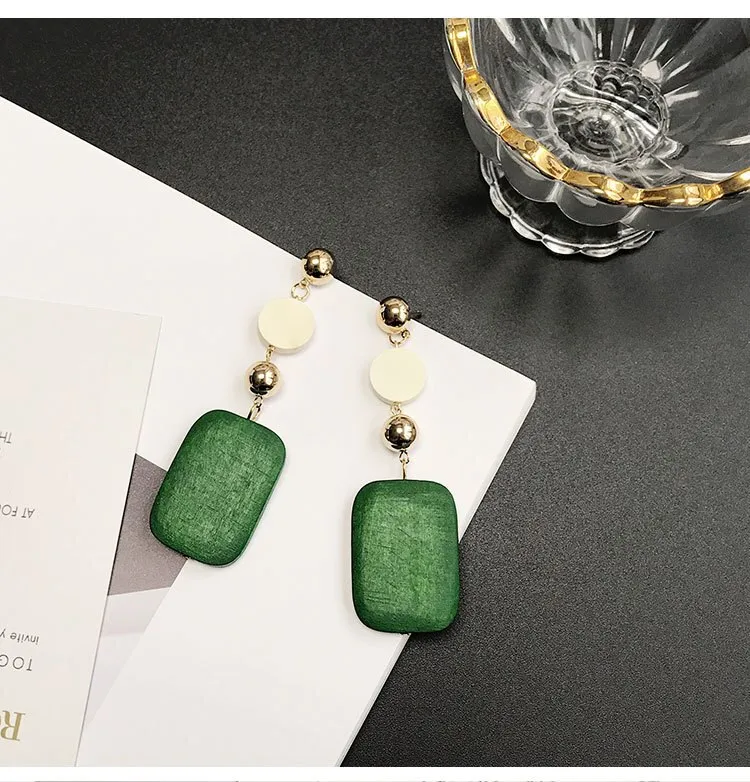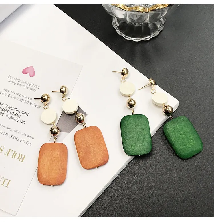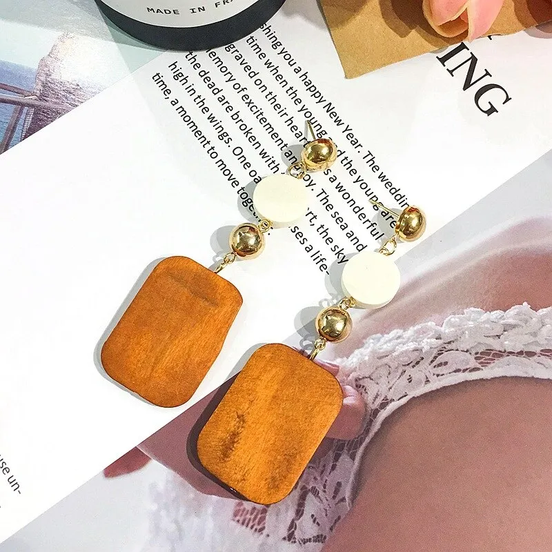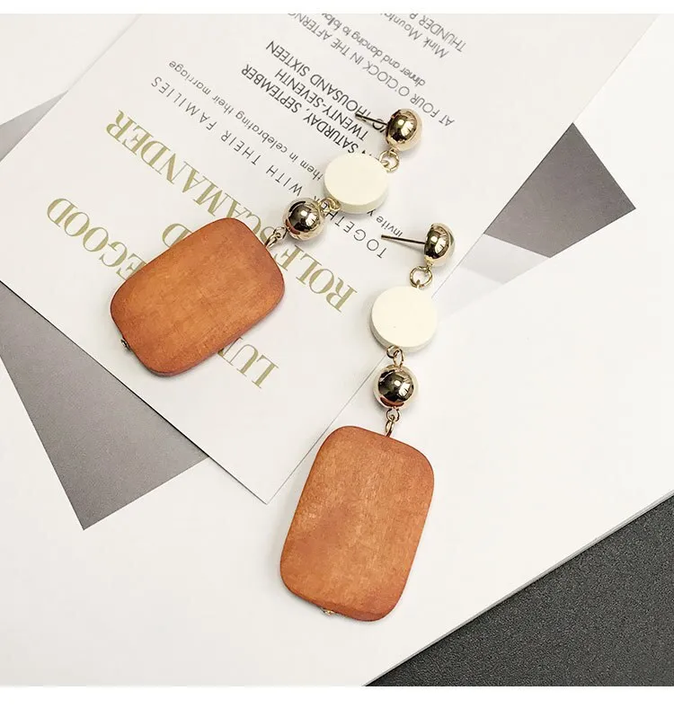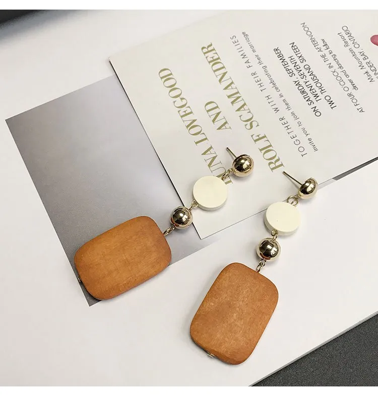 Retro geometric wooden earrings Korean style simple temperament long wood earrings personality trend earringsMaterial: wood
