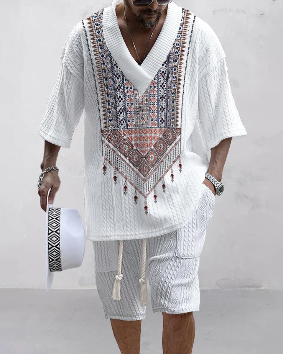 Why Choose This Vintage Jacquard V-Neck Two Piece?