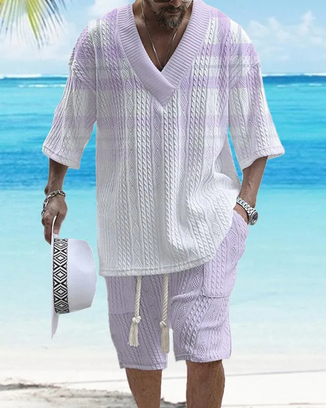 Vintage Jacquard V-Neck Two Piece – Timeless Texture with Effortless Coordinated Style