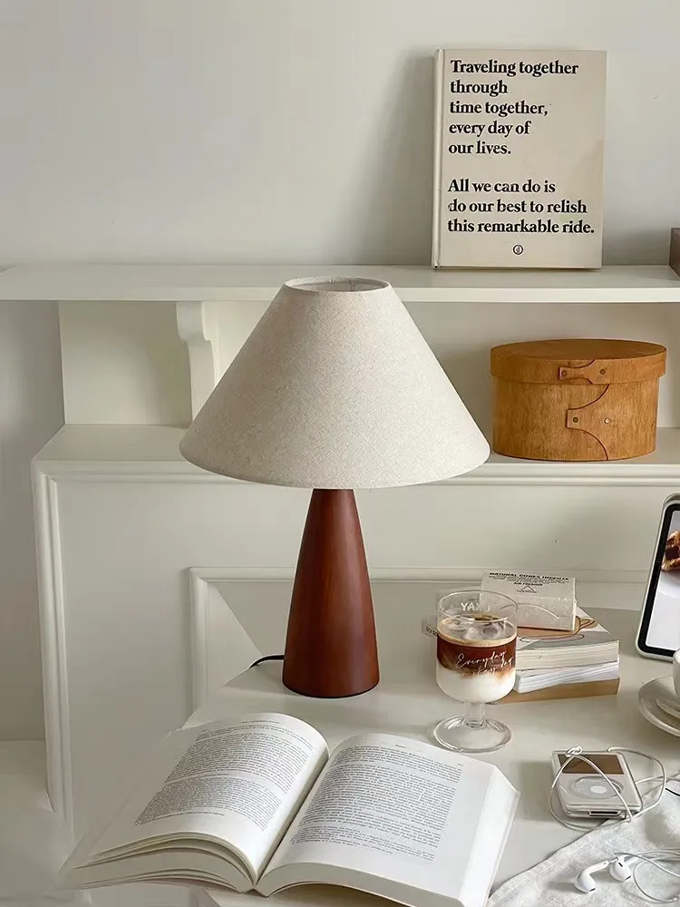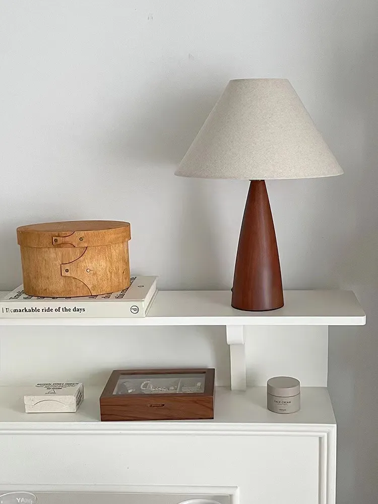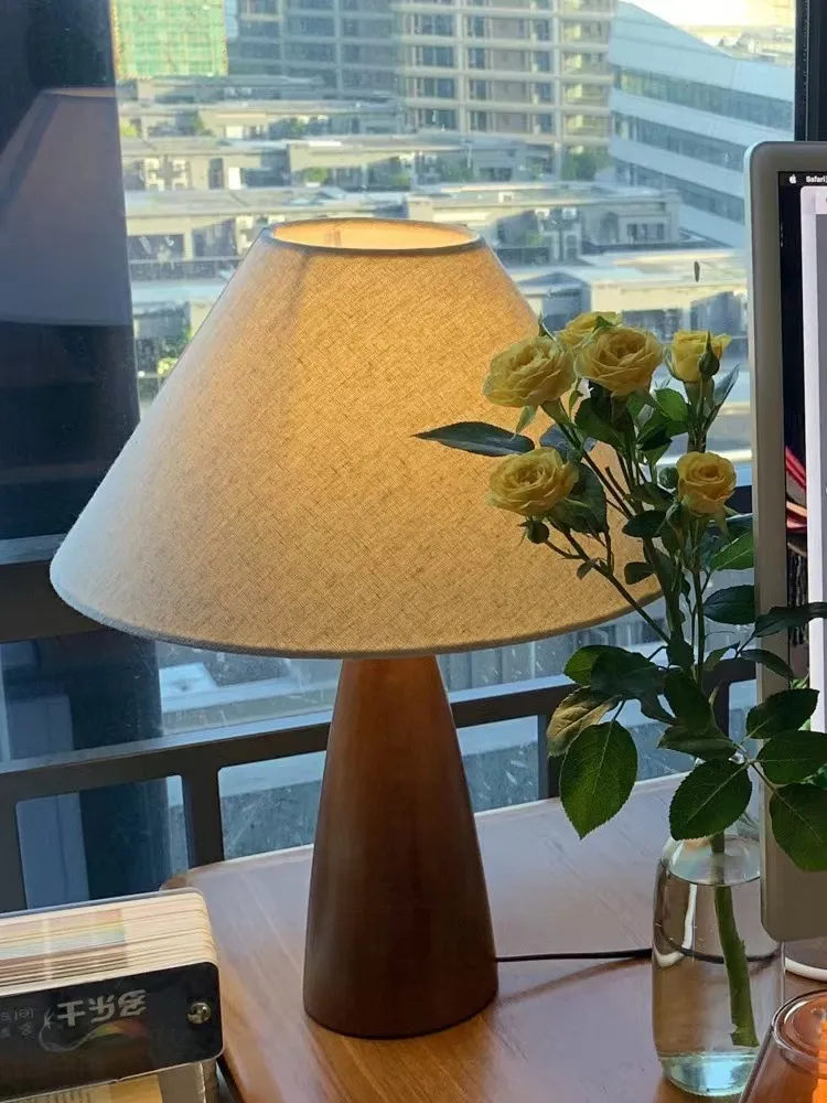 warm light adjustable brightness, solid wood Cone lamp body# Three-color electrodeless dimming# send remote control adjustable color