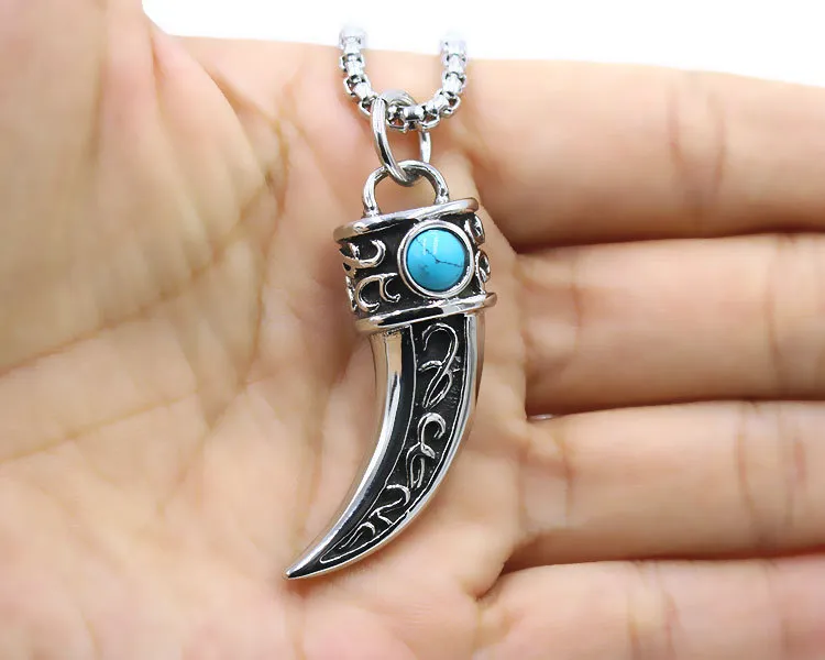 Benefits of the Vintage Men's Titanium Steel Wolf Tooth Blue Pine Stone Pendant