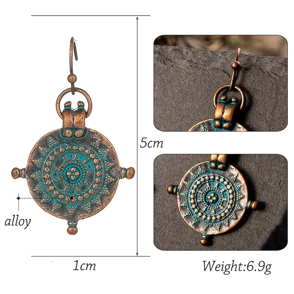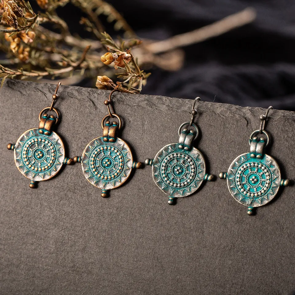 Vintage Roulette Shaped Carved Pendant Earrings